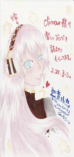 まぁイラストを貰ったわけだが~…、『巡音ルカ』って奴らしいんだが…
