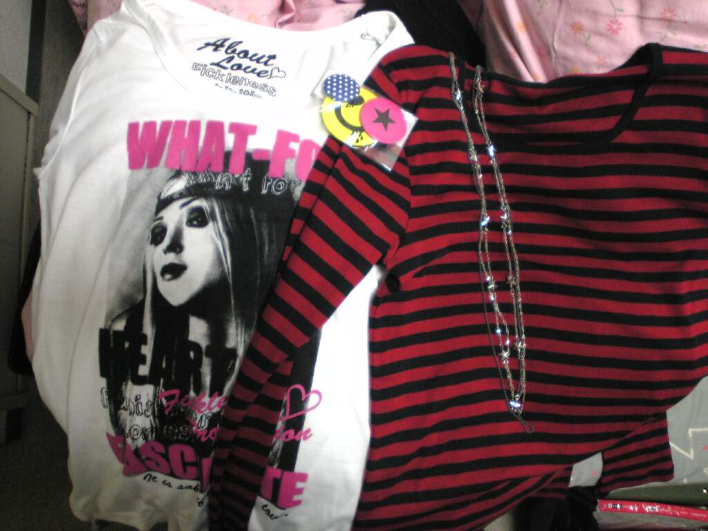 ↑の写真ですね。服を2着と、アクセと、缶バッチ。